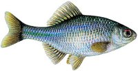 Der Bitterling (Rhodeus sericeus) ist eine 4 bis maximal 6 cm lange Kleinfischart. Die relativ große Rücken- und Afterflosse sind gegenständig und weit nach hinten versetzt.Körperseiten und Bauch tragen einen hellen Silberglanz, während der Rücken graugrün gefärbt ist.